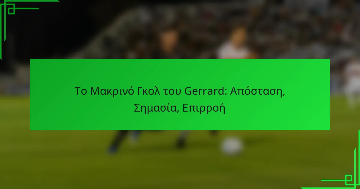 Το διάσημο γκολ του Τζέραρντ από μακρινή απόσταση επιτεύχθηκε από περίπου 30 γιάρδες, που είναι περίπου 27 μέτρα. Αυτή η αξιοσημείωτη απόσταση αναδεικνύει τόσο την ικανότητά του όσο και τη σημασία των μακρινών σουτ στο ποδόσφαιρο.