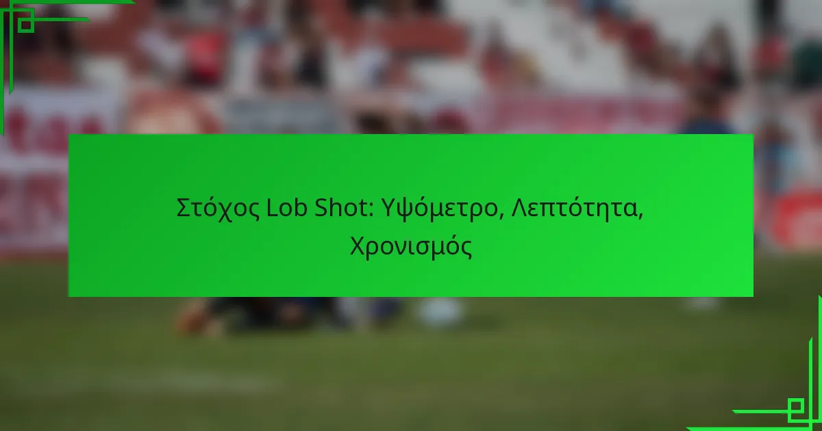 Ένα γκολ με λομπ είναι μια στρατηγική τεχνική στον αθλητισμό που περιλαμβάνει το χτύπημα της μπάλας με ανυψωτική κίνηση για να την περάσει πάνω από αμυντικούς ή εμπόδια. Αυτή η ικανότητα απαιτεί έναν συνδυασμό ανύψωσης, φινέτσας και ακριβούς χρονισμού, καθιστώντας την απαραίτητη για αποτελεσματικό παιχνίδι. Με την κατάκτηση της σωστής θέσης του σώματος και της τεχνικής των ποδιών, οι παίκτες μπορούν να ενισχύσουν την ικανότητά τους να εκτελούν μια επιτυχημένη λομπ, επιτρέποντας μεγαλύτερο έλεγχο και ακρίβεια σε κρίσιμες στιγμές.