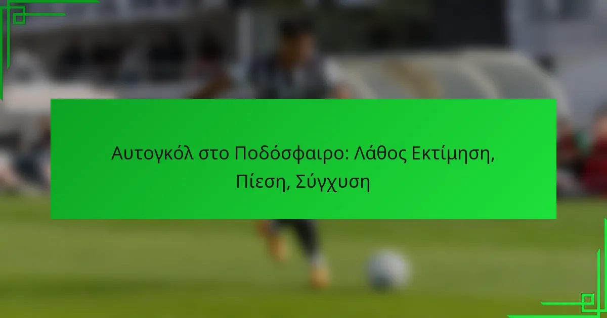 Ένα αυτογκόλ στο ποδόσφαιρο είναι ένα απογοητευτικό γεγονός όπου ένας παίκτης σκοράρει κατά λάθος για την αντίπαλη ομάδα, συχνά λόγω λανθασμένης εκτίμησης ή σύγχυσης. Παράγοντες όπως η πίεση από τους αντιπάλους και η έλλειψη επίγνωσης μπορούν να οδηγήσουν σε αυτά τα ακούσια λάθη, επηρεάζοντας σημαντικά την έκβαση του αγώνα. Το ψυχολογικό άγχος σε καταστάσεις υψηλού κινδύνου μπορεί να θολώσει τη λήψη αποφάσεων ενός παίκτη, οδηγώντας σε παρορμητικές ενέργειες που συμβάλλουν στο σκοράρισμα κατά της δικής του ομάδας.