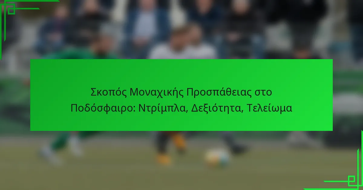 Η βελτίωση των ικανοτήτων ντρίμπλας σας για ατομικές προσπάθειες στο ποδόσφαιρο περιλαμβάνει την κυριαρχία σε βασικές τεχνικές, την ενίσχυση της κίνησης των ποδιών και την πρακτική αποτελεσματικού ελέγχου της μπάλας. Επικεντρωθείτε σε συγκεκριμένες ασκήσεις και στρατηγικές που σας επιτρέπουν να ξεπερνάτε τους αμυντικούς και να τελειώνετε με ακρίβεια.